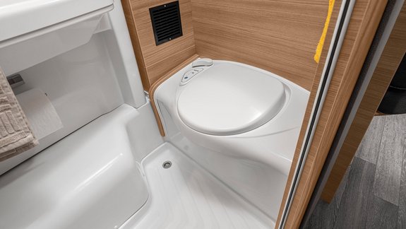 Dank der bequemen Banktoilette genießen Sie auch unterwegs hygienischen Komfort und hochwertiges Design wie zu Hause.