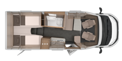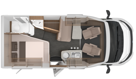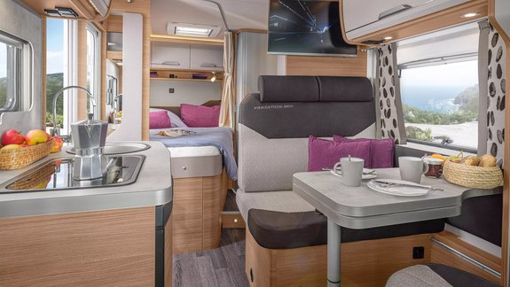 Dank des hellen, freundlichen Möbeldekors und der FoldXpand Heckkonstruktion bildet der Wohnraum eine Wohlfühlzone.
