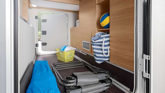 Dank einer Heckgarage mit zusätzlicher Garagentür haben Sie mehr Platz und Komfort im Urlaub. Durch die zusätzliche Garagentüre ist die Garage besonders einfach zu erreichen.