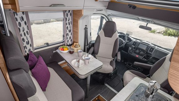 Durch die schwenkbaren Fahrsitze können bis zu 5 Personen bequem am Tisch sitzen.