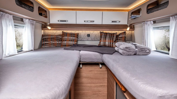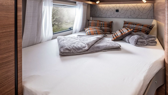 Bequemen Schlaf genießen Sie auf dem französischen Bett, das durch seine Breite überzeugt. Optionales Panorama-Dachfenster in 130 x 45 cm erhältlich.