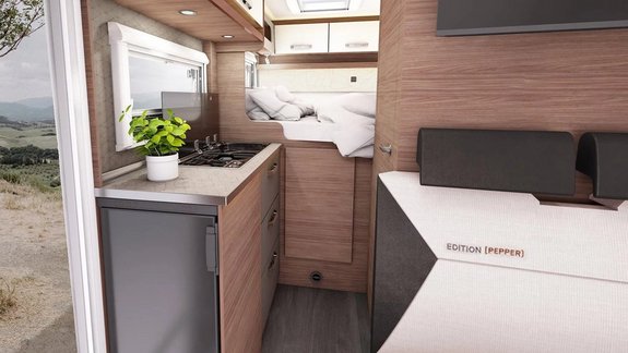 Erleben Sie den brandneuen X-Cursion Van EDITION [PEPPER]. Das Wohnmobil basiert auf dem VW T6.1 und kann in zwei Grundrissen (500 LT, 500 MQ) erworben werden. Dank des großzügigen Grundrisses 500 MQ bietet der Stauraum Platz für Campingmöbel, Sportgeräte und vieles mehr, welcher mittels einer großen Türe einfach erreichbar ist. Highlights des 500 LT's sind ein multifunktionales Flexbad, sowie das innovative Easy-Move-Bett. Hierdurch können bis zu zwei weitere Personen eine gemütliche Nacht im X-Cursion Van EDITION [PEPPER] verbringen.
