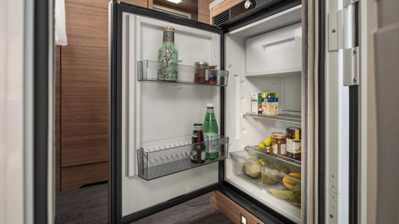 Ein geräumiger, praktisch positionierter Kühlschrank bietet Platz für alle Köstlichkeiten, die Sie für Ihren Urlaub benötigen.